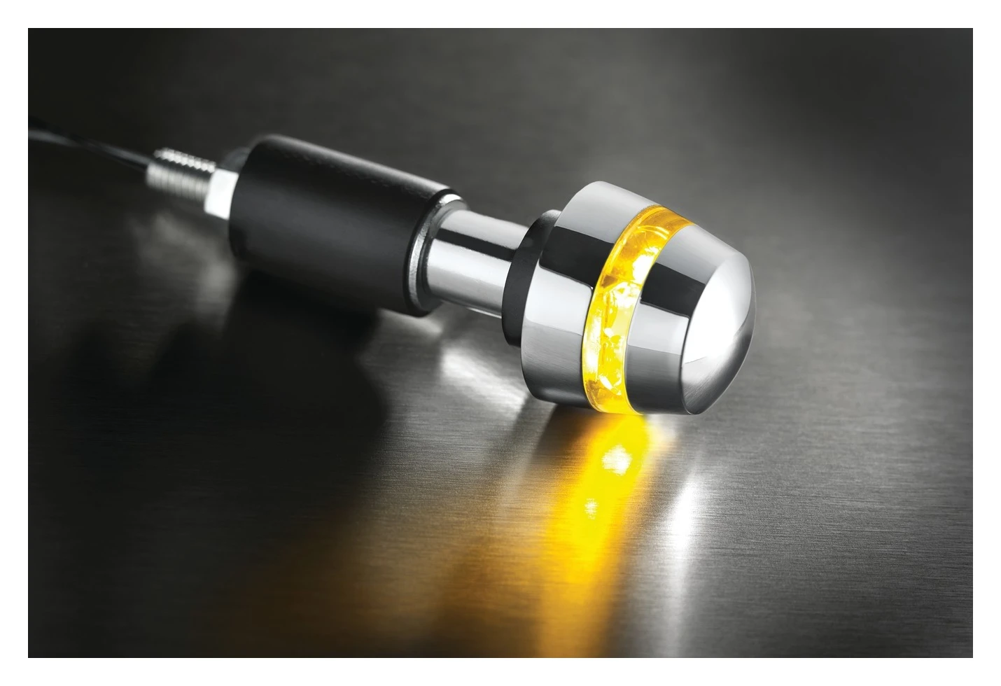 Small, but incredibly powerful, the Kuryakyn by Kellermann BL 2000 bar-end turn signal sets new standards. Visually unnoticeable when not in use, activate the indicators for a strikingly bright flashing amber LED signal that’s sure to grab the attention of other motorists. The sleek metal housing with smoke-tinted glass ring is lightweight and unobtrusive, creating a clean look for virtually any handlebar setup.