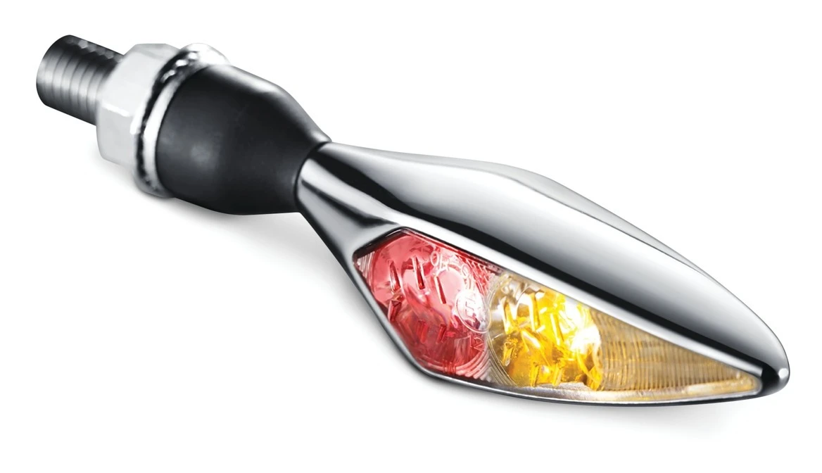 Aggressive lines to complement virtually any ride. Kuryakyn by Kellerman micro Rhombus indicators feature durable glass lenses with sleek, angular metal housings and a flexible rubber base that absorbs impact and helps prevent vibration damage.