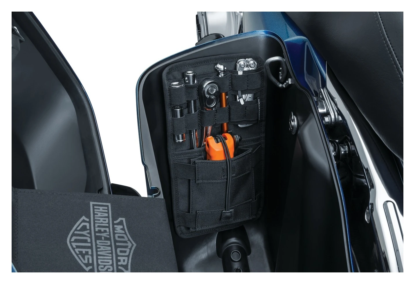 No more fumbling through that abyss of a saddlebag to find your tools, phone or whatever inevitably ends up at the bottom. Kuryakyn’s Internal Saddlebag Organizers keep small items secure and easily accessible. Mounts to the inner front panel in seconds using high-strength 3M VHB.