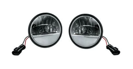 Increase your visibility and enhance your night time riding experience with this DOT approved replacement for your halogen lights. The LED lamps produce light far superior to that of conventional halogen lamps, with a color temperature of 5,800K, closer to the color temperature of daylight providing better visibility. Complex reflector design provides unmatched performance while providing the appearance of traditional lamps. The maintenance-free lamps use a solid-state, bulb-free system that’s impervious to damage caused by shock and vibration, with a military grade die-cast aluminum housing. The non-yellowing polycarbonate lens and a scratch-resistant hard coating to protect against damage from impact, roadside debris and other hazards. Passing lamp’s complex reflector complements the look of the headlamp. Advanced LED technology has significantly reduced LED headlamp current draw compared to halogen products, allowing more power for other vehicle requirements & extending alternator life. Meets applicable DOT, FMVSS or SAE requirements. The matching Phase 7 Headlamp is also available.Â