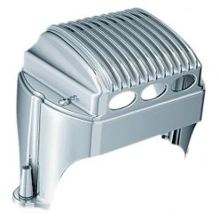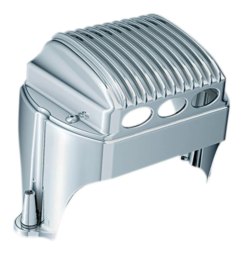 A complete chrome cover for your stock voltage regulator. Open and well-vented design keeps your regulator running cool.