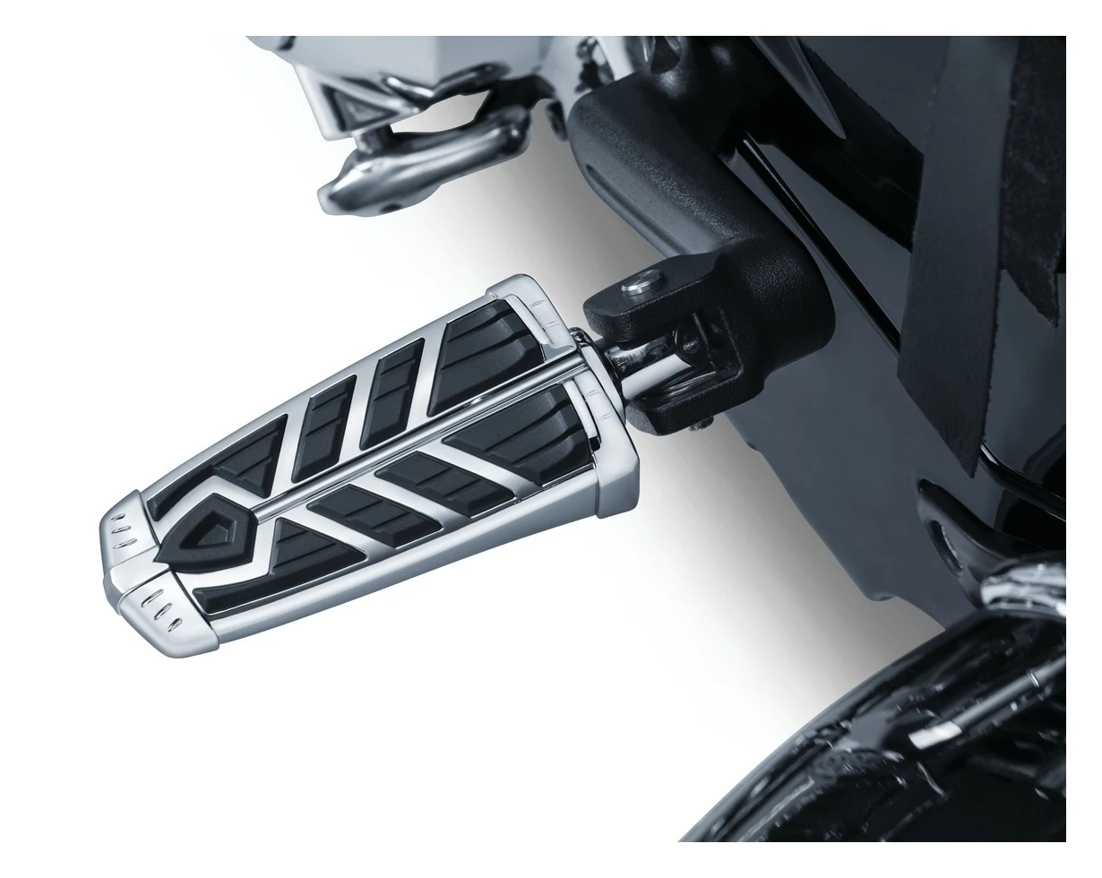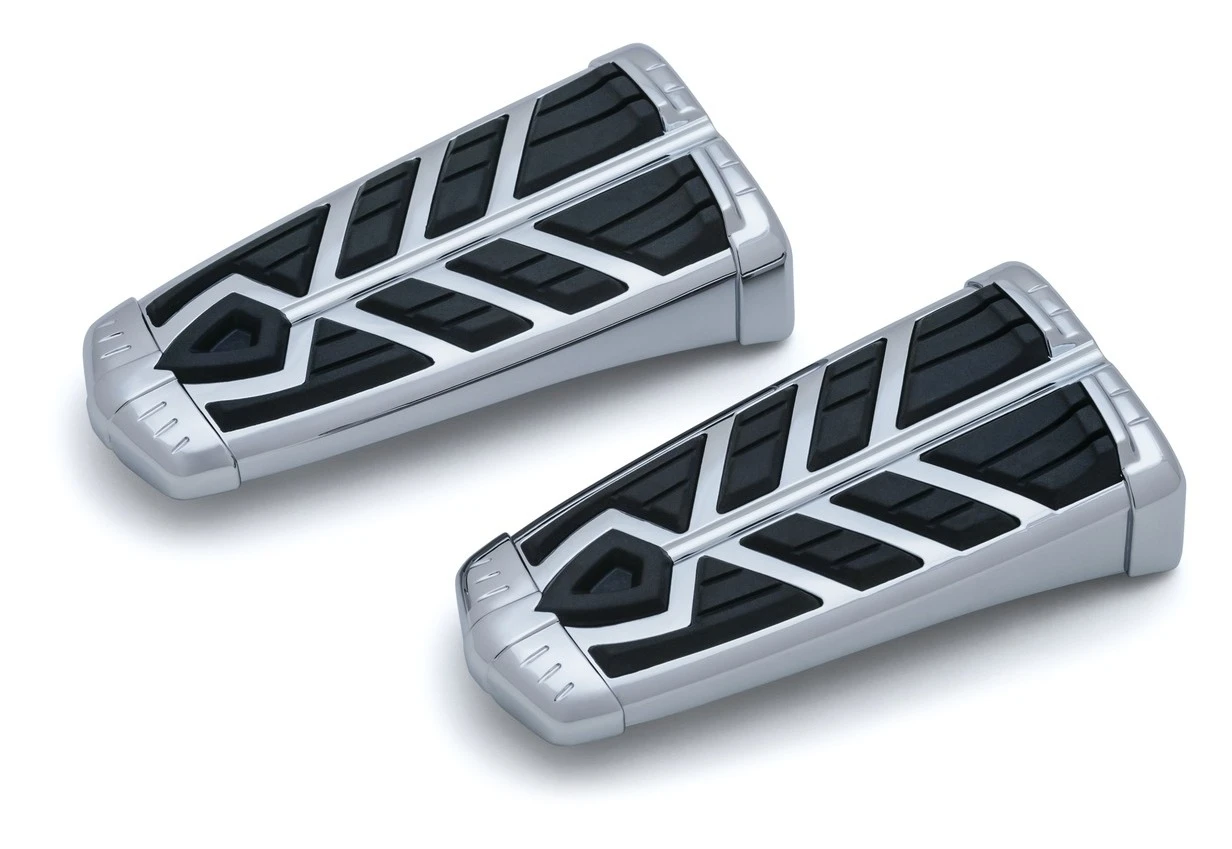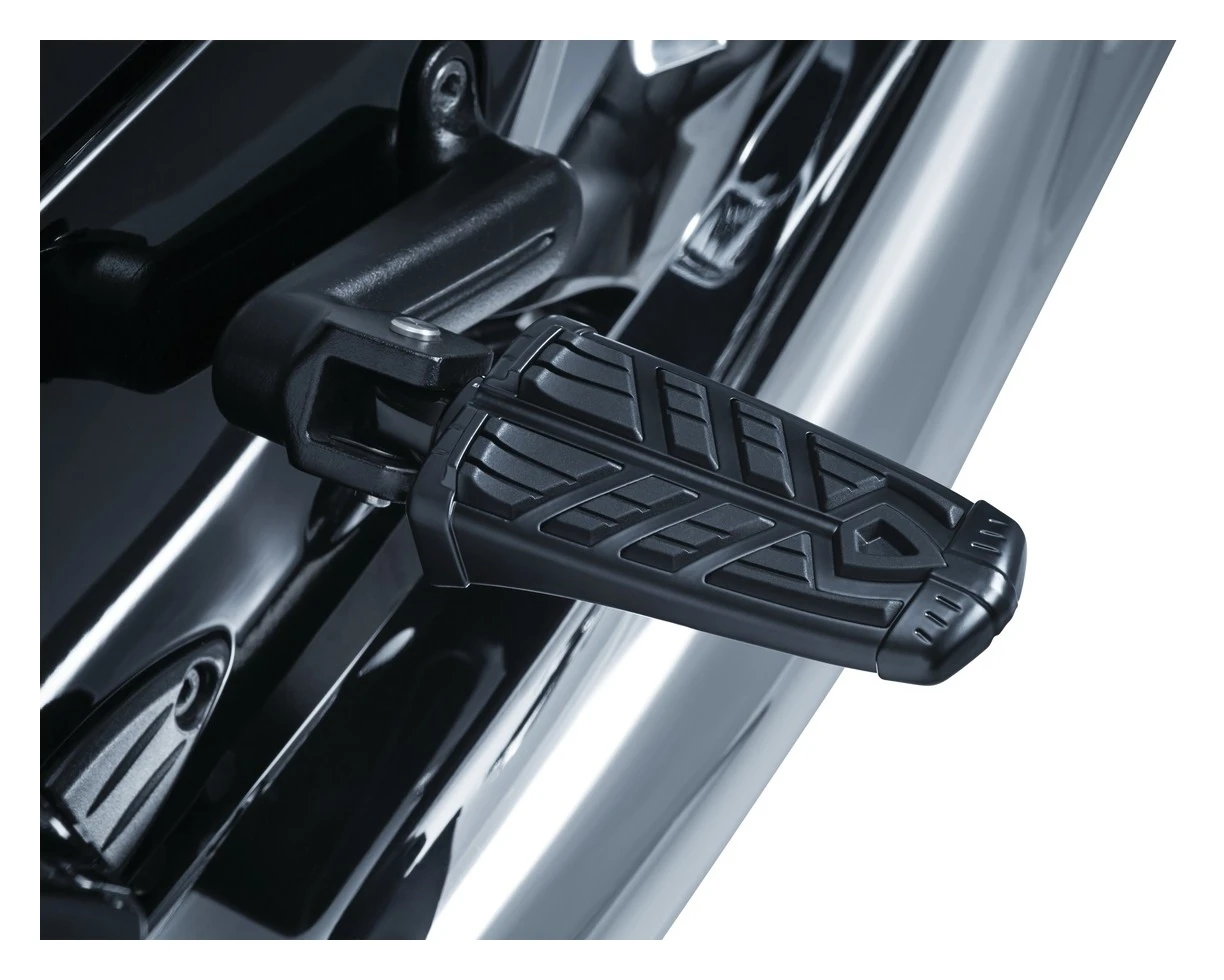 Spear Footpegs feature a unique three-piece design that incorporates aluminum upper and lower castings with premium EPDM rubber form-fitted in the middle. The flattened top surface offers ideal foot placement and support, while the soft rubber inserts deliver solid traction and reduced vibration for comfort on long rides.Â