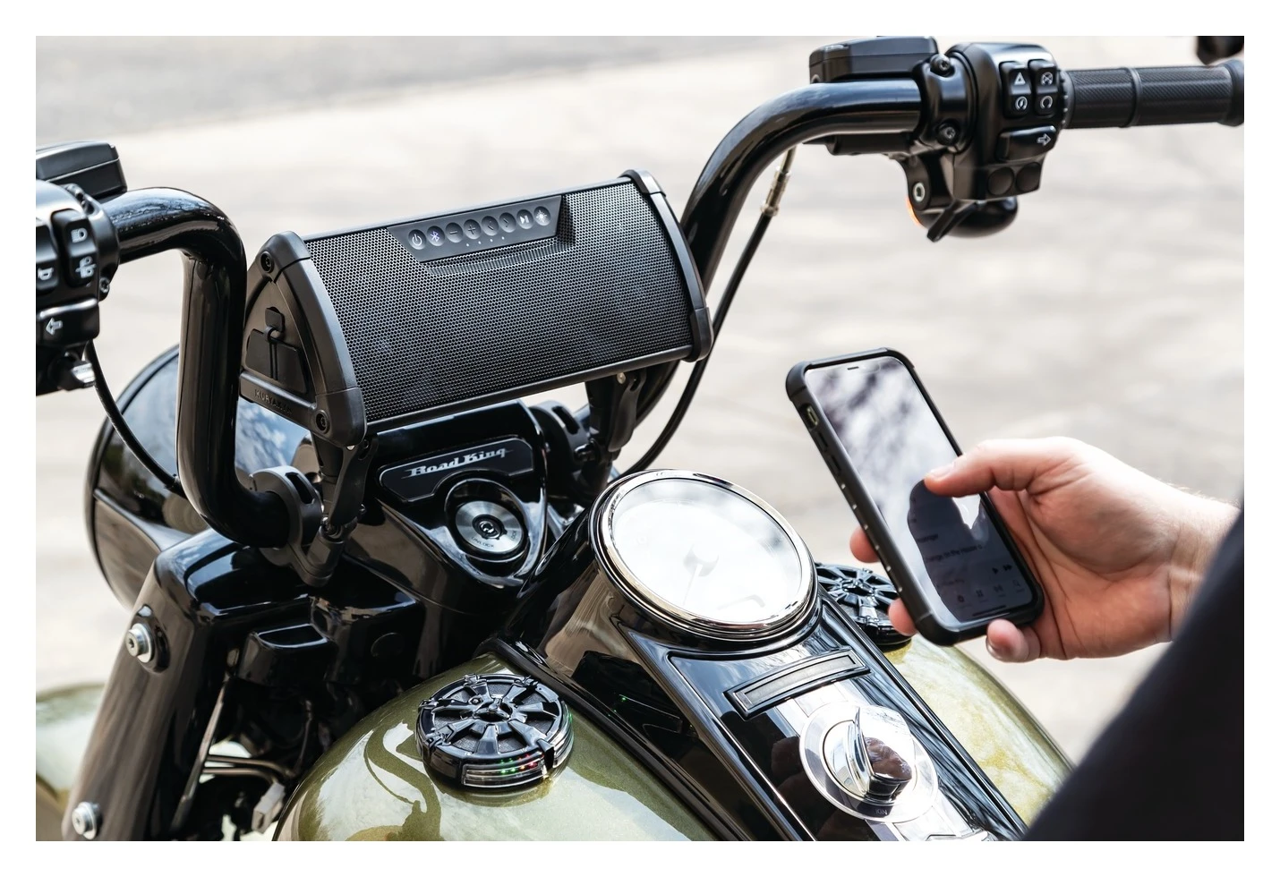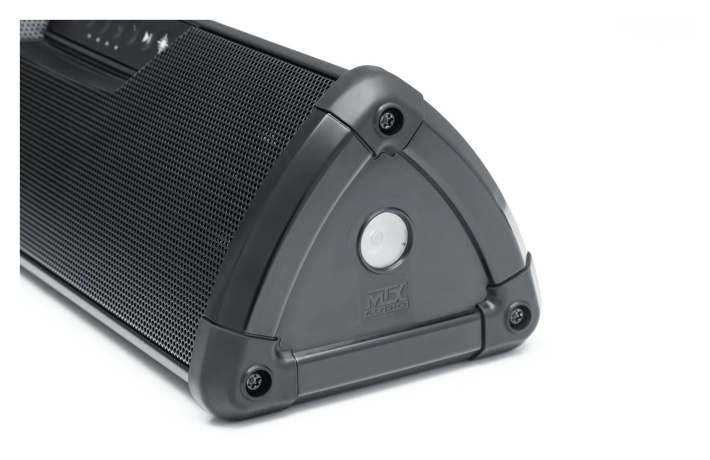 Finally a sound bar that is built to handle everything that the outdoor world can throw at it. This incredibaly rugged system is here to match up with your active lifestyle and the weaather that sometimes goes along with that. All this while bringing you crystal clear sound and immersive mid and low range dapth thanks to an integrated DSP (Digital Signal Processor) That provides peak performance at any volume. The internal amp powers two neodymium woofers and four teteron dome tweeters working along with passive reditors to produce thumping mids and basslines that you will not find in typical compact soundbars. The all weather construction make the Wanderbar™ perfect for use on motorcycles, ATV’s or any other recreational vehicle. Can also be used when not mounted on a vehicle due to the onboard lithium battery that allows for hours of playback whether camping, tailgating, wrenching in the garage or just jammin’ at home.